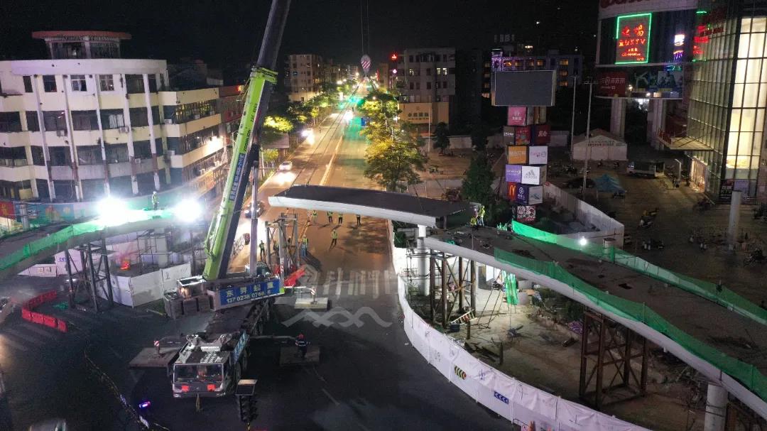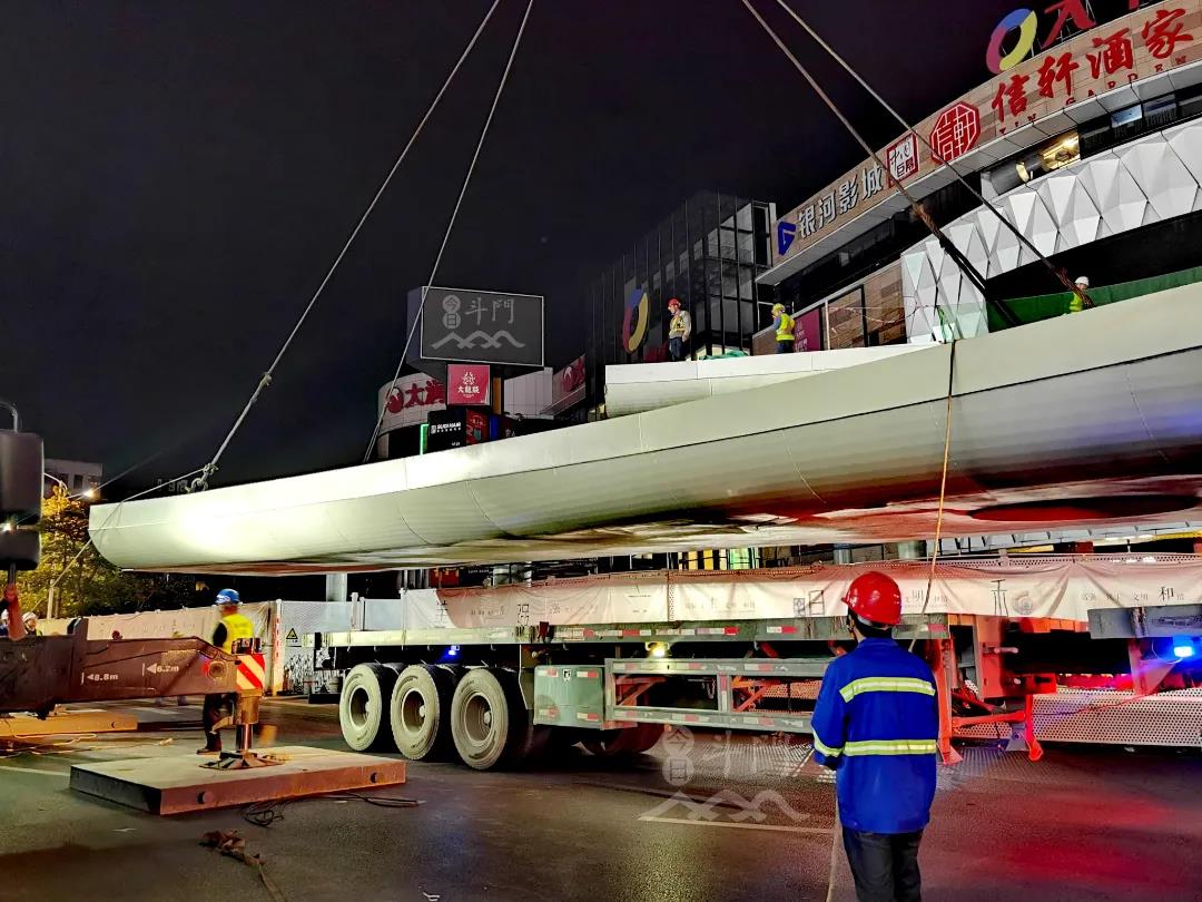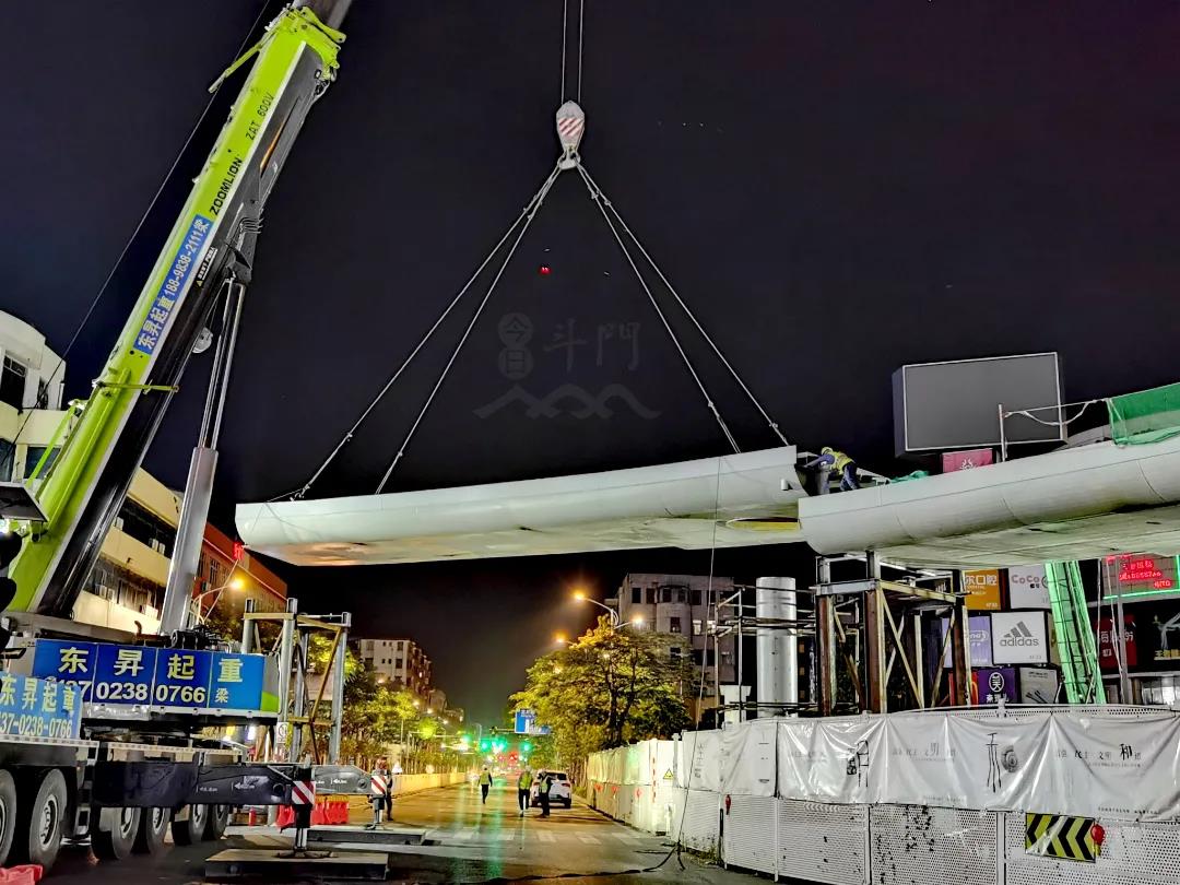 小斗了解到,該主橋于10月17日進(jìn)行第一節(jié)主橋鋼箱梁吊裝,經(jīng)過近一個(gè)月的施工,今日凌晨迎來最后一次吊裝施工。